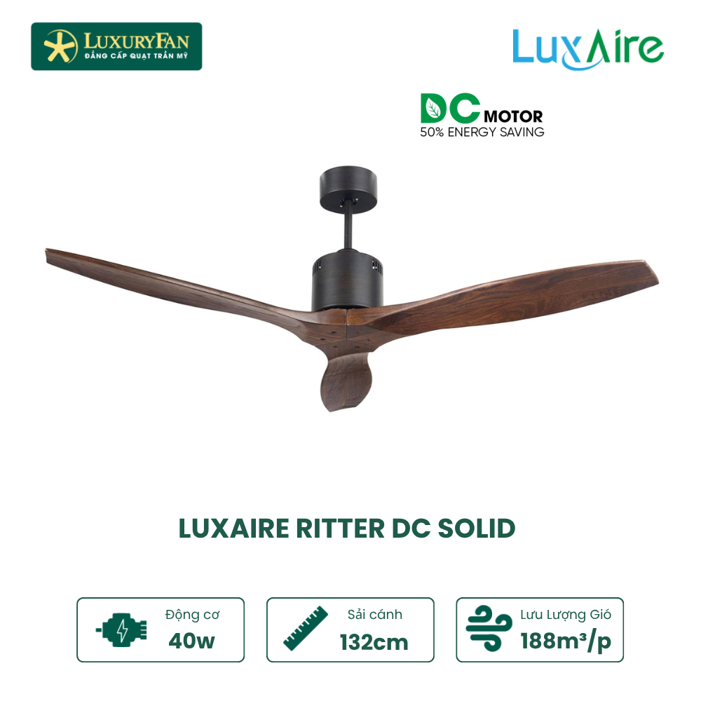 Từ chất liệu sử dụng, thiết kế kiểu dáng, màu sắc của quạt, công năng, đến thiết bị điều khiển đều mang những ưu điểm nổi bật khiến quạt trần Luxaire Ritter DC Solid Wood BN trở thành cái tên được nhiều khách hàng ưu ái lựa chọn.