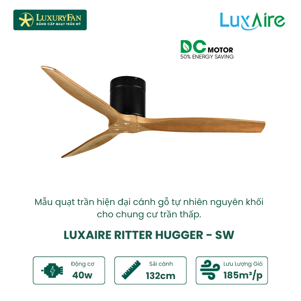 Với thiết kế đẹp mắt và tính năng vượt trội, LuxAire Ritter Hugger SW phù hợp cho nhiều loại không gian khác nhau, từ chung cư đến biệt thự hay căn hộ cao cấp.
