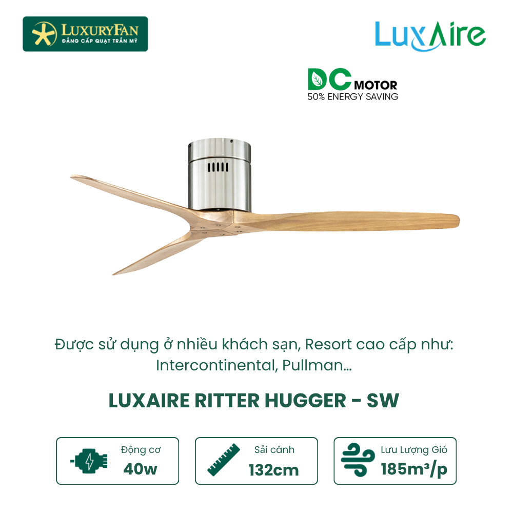 Với thiết kế đẹp mắt và tính năng vượt trội, LuxAire Ritter Hugger SW phù hợp cho nhiều loại không gian khác nhau, từ chung cư đến biệt thự hay căn hộ cao cấp.
